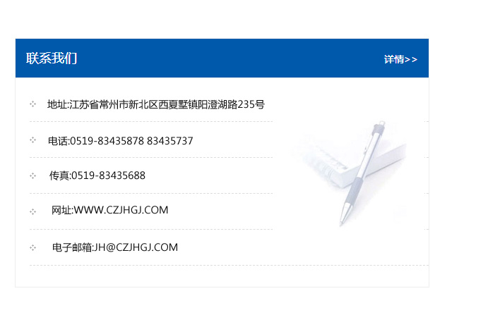 傳真:0519-83435688    郵編:213135    網址:WWW.czjhgj_com.idevcn.com    電子郵箱:JH@czjhgj_com.idevcn.com
